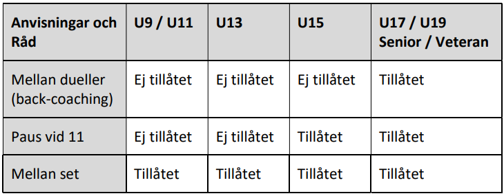 Observera att det är olika coachingregler för olika åldersklasser, se ovan.